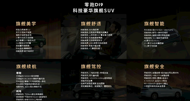 作为家族旗舰,零跑D19车内也做到了全感官奢享座舱,彩电冰箱大沙发、奢享大空间、120°完美姿态零重力座椅、全粒面真皮等旗舰配置全搭载。