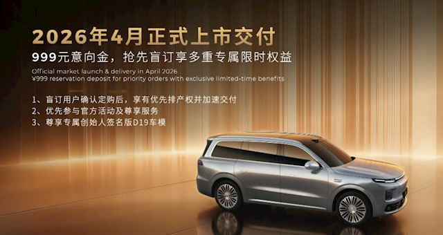 目前,零跑D19支付999元的意向金,即刻参与盲订,享有优先排产权并加速交付等多重专属权益。